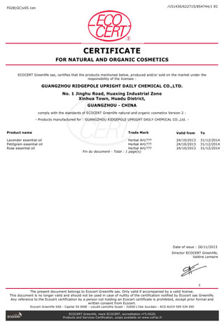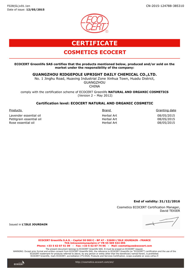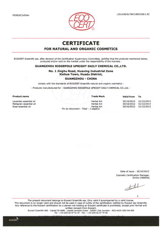○ 歐盟ECOCERT天然有機(jī)化妝品生產(chǎn)認(rèn)證證書