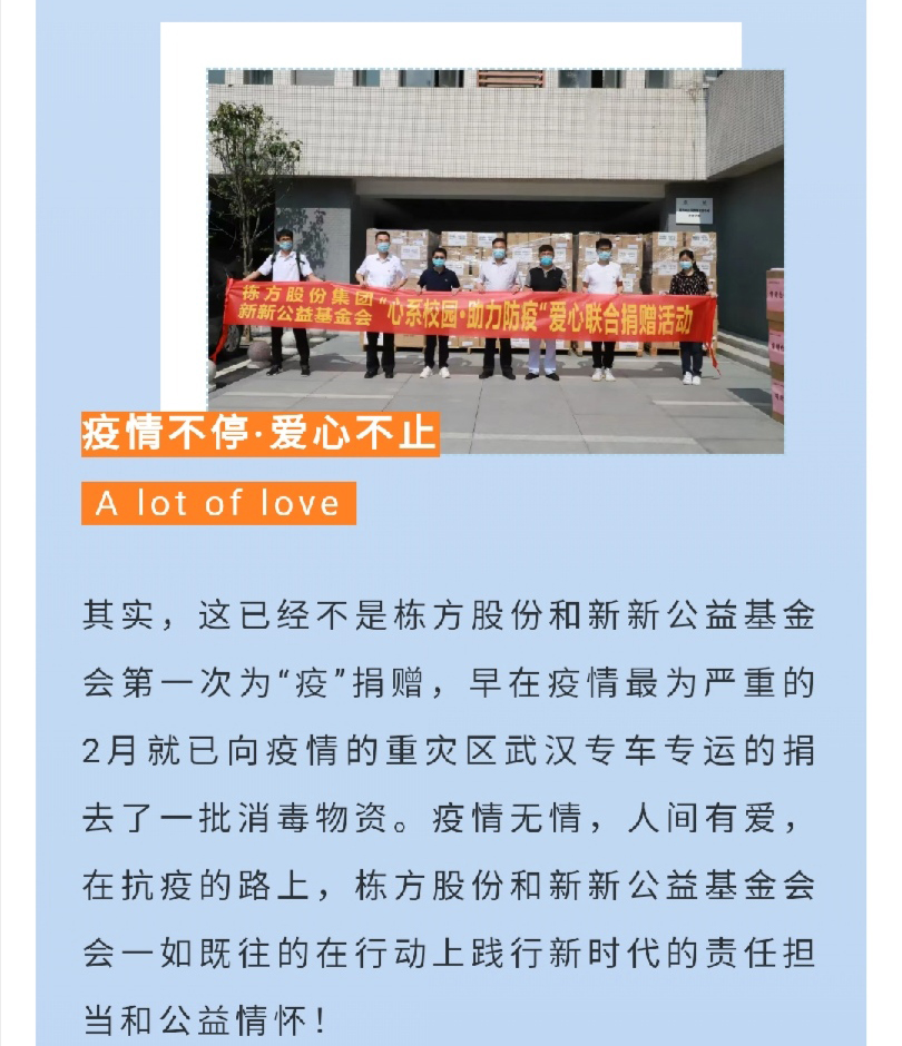 情暖校園丨棟方股份攜手新新公益基金會(huì)再度捐贈(zèng)防疫物資